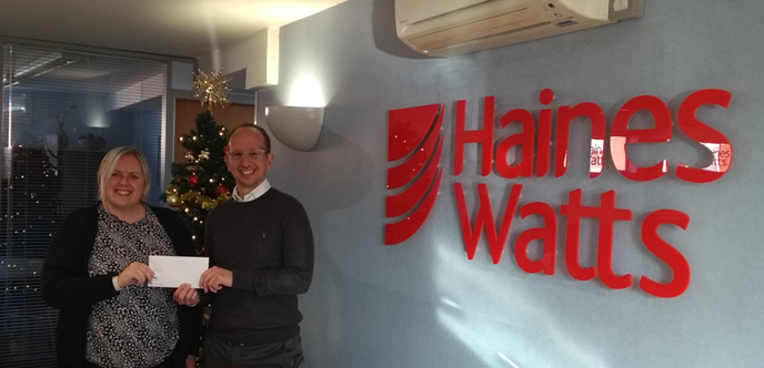 Haines Watts Nottingham Ltd were also very pleased to be able to sponsor Michelle and Maisie in their fundraising efforts, Director James Liptrott presented the donation to Michelle.